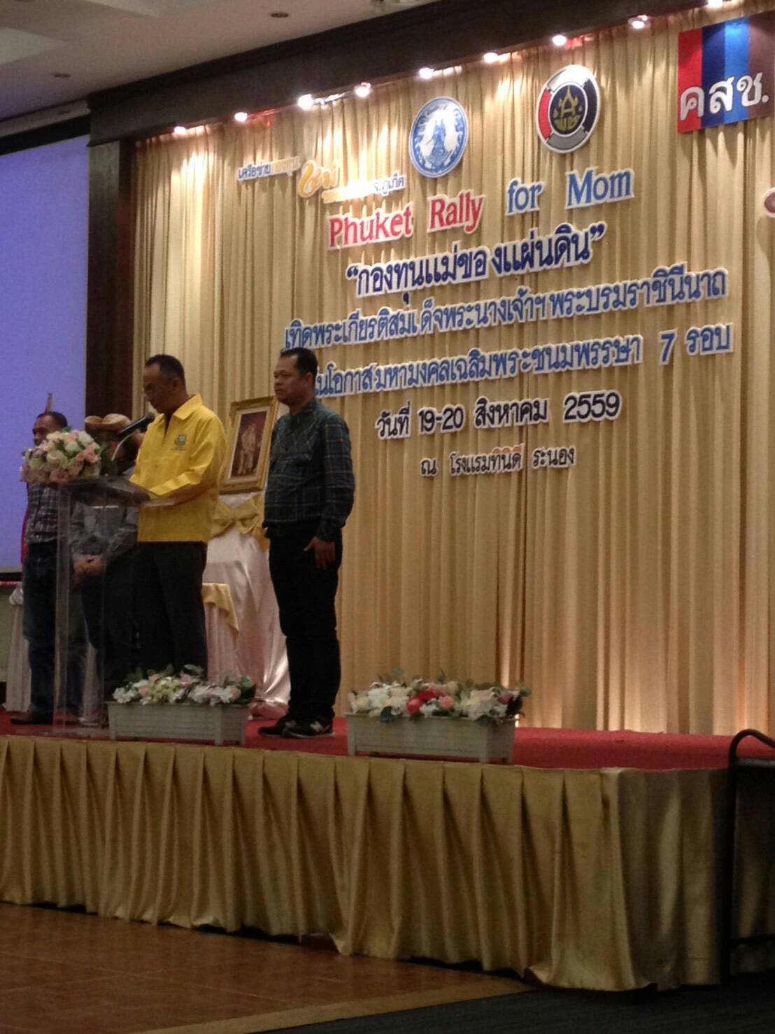 วันที่ 18-19 สิงหาคม 2559 นายสำราญ สินธ์ทอง ประธานมูลนิธิอนุรักษ์ทรัพยากรธรรมชาติอันดามัน ผู้แทน พลเอกยศนันท์ หร่ายเจริญ ผู้อำนวยการสำนักประสานงานโครงการอันเนื่องมาจากพระราชดำริและความมั่นคงกองทัพบก นายจิระศักดิ์ ชูความดี ผู้อำนวยการสำนักบริหารอุทยานพื้นที่ 5 จังหวัดนครศรีธรรมราช ร่วมเปิดกิจกรรม Phuket Rally กองทุนแม่ของแผ่นดิน เครือข่ายโครงการแม่ของแผ่นดิน โดยพัฒนาชุมชนจังหวัดภูเก็ต ร่วมจัดโครงการ ปลูกต้นไม้เทิดพระเกียรติสมเด็จพระนางเจ้า ฯ พระบรมราชินีนาถ เนื่องในโอกาสมหามงคลเฉลิมพระชนมพรรษา7 รอบ ค่ายรัตนรังสรรค์ กองพันทหารราบที่ 2 กรมทหารราบที่ 25 ตำบลราชกรูด อำเภอเมือง จังหวัดระนองกิจกรรมครั้งนี้เป็นกิจกรรมสร้างเครือข่ายเพื่อสร้างความสัมพันธ์อันดีระหว่างภาครัฐกับภาคเอกชน รวมทั้ง ตรวจเยี่ยมอุทยานหมู่เกาะระนองและอุทยานน้ำตกหงาว อำเภอเมือง จังหวัดระนอง พร้อมทั้งลงพื้นที่ ตรวจเยี่ยมชุมชนอำเภอกะเปอร์ที่ได้รับรางวัลเศรษฐกิจชุมชน โดยพัฒนาชุมชนจังหวัดระนอง และผู้นำท้องถิ่น หัวหน้าส่วนราชการในจังหวัดระนองและภาคเอกชน ให้การต้อนรับ