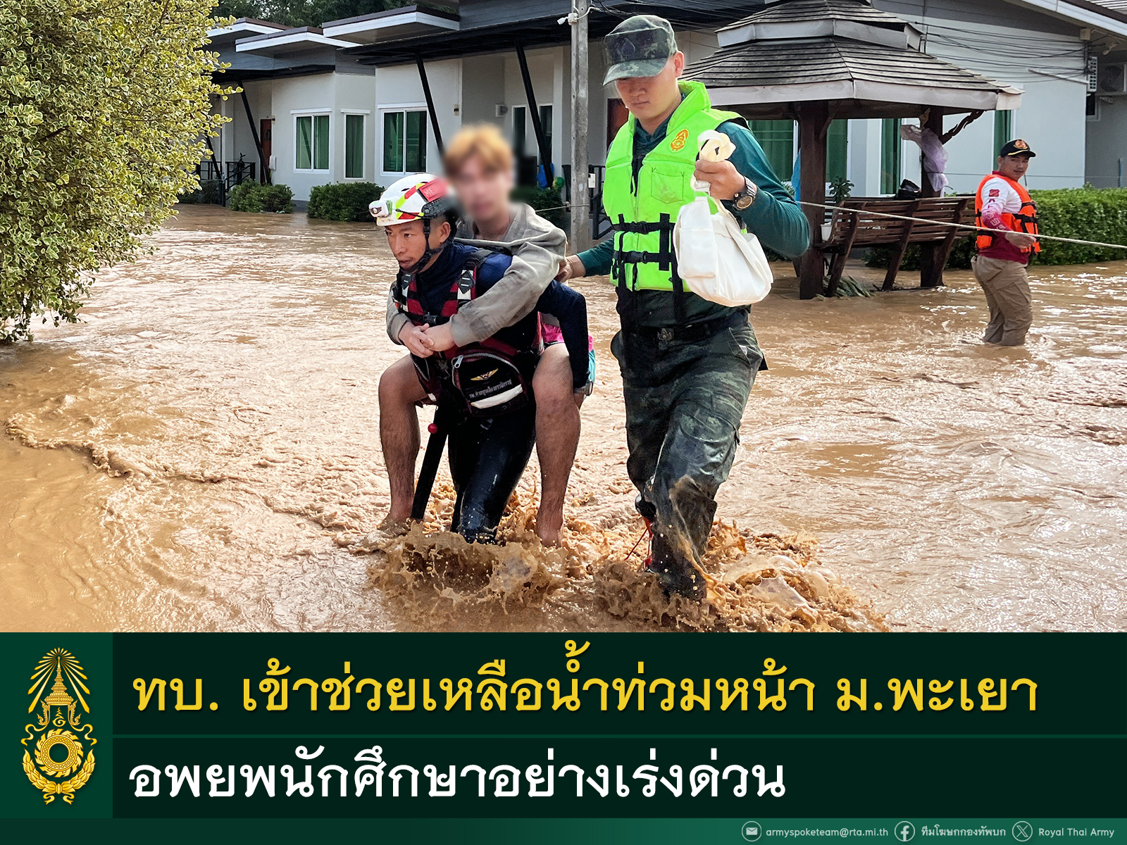 ทบ. เข้าช่วยเหลืออพยพนักศึกษาอย่างเร่งด่วน จากเหตุน้ำท่วมหน้า ม.พะเยา