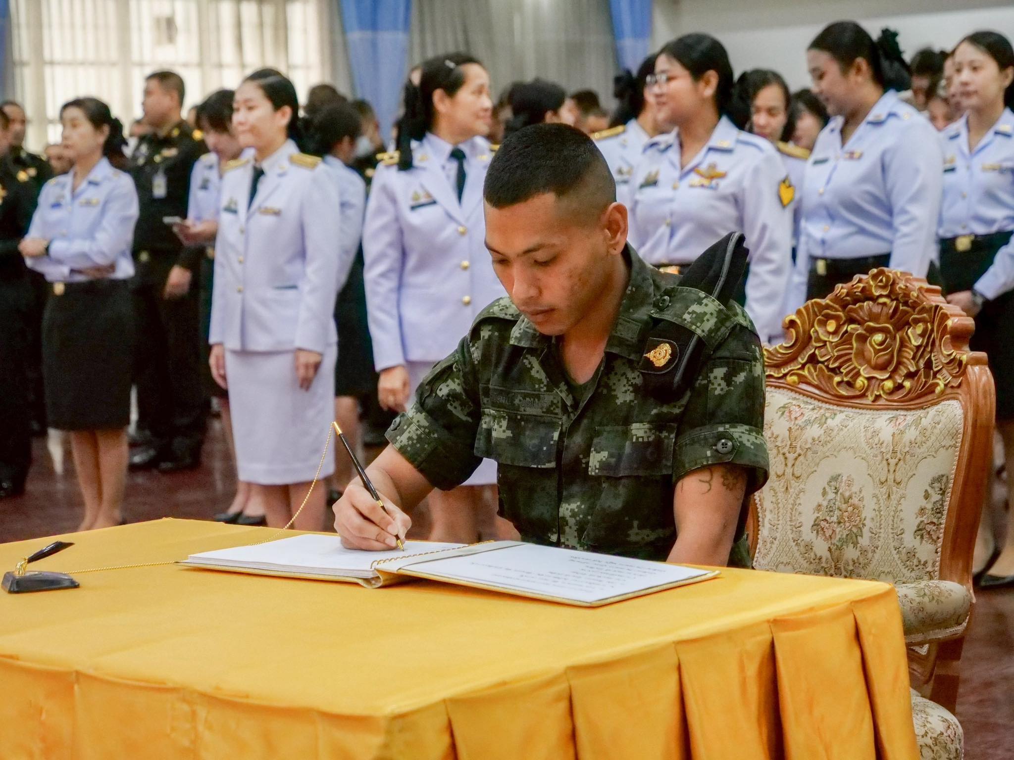 พลโท วัชรินทร์ มุทะสินธุ์ ผู้บัญชาการหน่วยบัญชาการรักษาดินแดน พร้อมด้วยคณะผู้บังคับบัญชา และกำลังพลของหน่วยบัญชาการรักษาดินแดน ตลอดจนนักศึกษาวิชาทหาร ร่วมกิจกรรมเฉลิมพระเกียรติ สมเด็จพระเจ้าน้องนางเธอ เจ้าฟ้าจุฬาภรณวลัยลักษณ์ อัครราชกุมารี กรมพระศรีสวางควัฒน วรขัตติยราชนารี เนื่องในโอกาสวันคล้ายวันประสูติ 4 กรกฎาคม 2568 ประกอบด้วย พิธีถวายราชสักการะ พิธีถวายราชสดุดีและถวายพระพรชัยมงคลเบื้องหน้าพระรูป เพื่อแสดงความจงรักภักดี พร้อมทั้งจัดนิทรรศการเฉลิมพระเกียรติฯ เผยแพร่พระราชประวัติและพระราชกรณียกิจและจัดโต๊ะลงนามถวายพระพรชัยมงคล