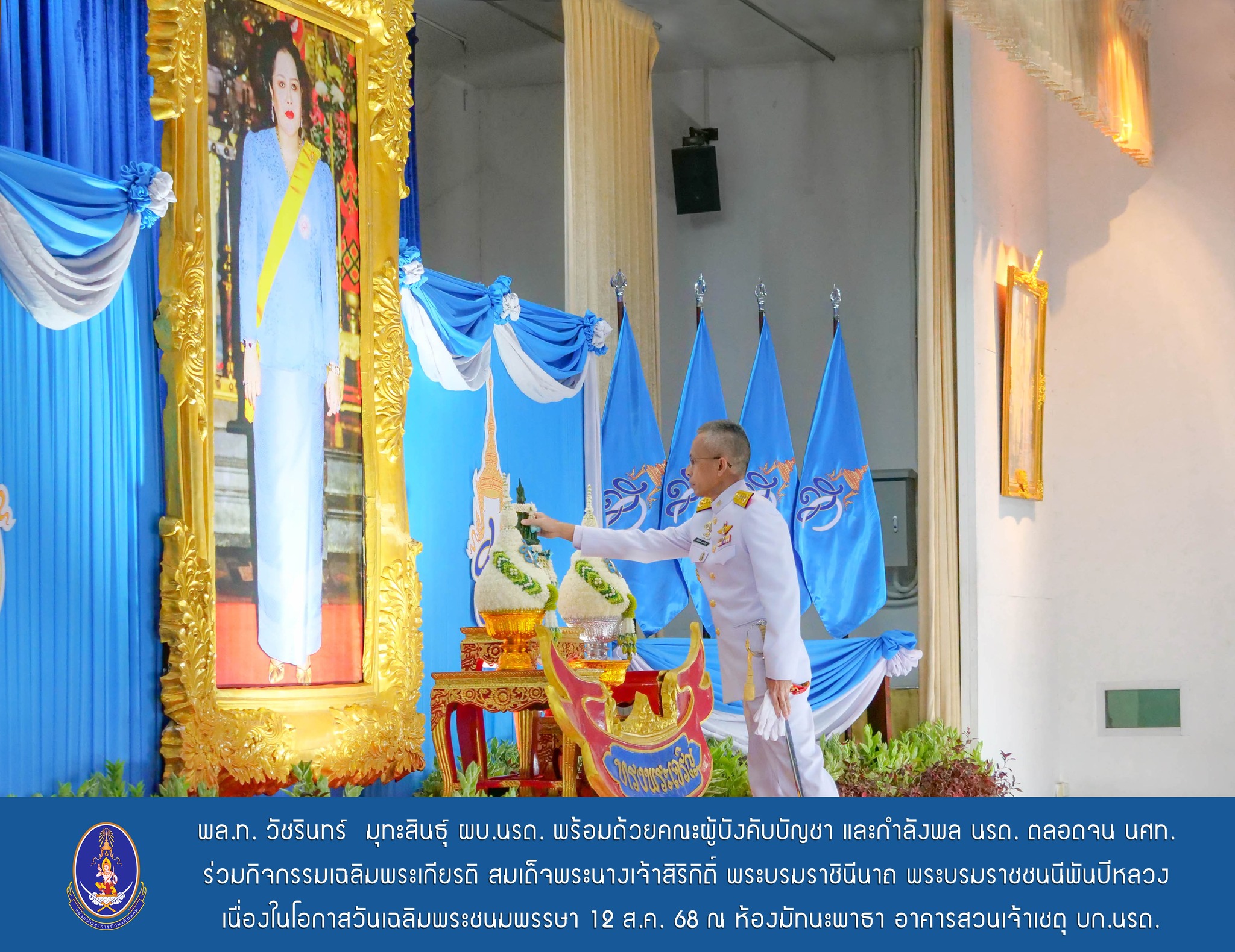 พลโท วัชรินทร์ มุทะสินธุ์ ผู้บัญชาการหน่วยบัญชาการรักษาดินแดน พร้อมด้วยคณะผู้บังคับบัญชา และกำลังพลของหน่วยบัญชาการรักษาดินแดน ตลอดจนนักศึกษาวิชาทหาร ร่วมกิจกรรมเฉลิมพระเกียรติ สมเด็จพระนางเจ้าสิริกิติ์ พระบรมราชินีนาถ พระบรมราชชนนีพันปีหลวง เนื่องในโอกาสวันเฉลิมพระชนมพรรษา 12 สิงหาคม 2568 ประกอบด้วย พิธีตักบาตรพระสงฆ์ พิธีถวายราชสักการ, พิธีถวายราชสดุดีและพิธีถวายพระพรชัยมงคล เบื้องหน้าพระฉายาลักษณ์ เพื่อแสดงความจงรักภักดี พร้อมทั้งจัดนิทรรศการเฉลิมพระเกียรติฯ เผยแพร่พระราชประวัติ พระราชกรณียกิจและจัดโต๊ะลงนามถวายพระพรชัยมงคล