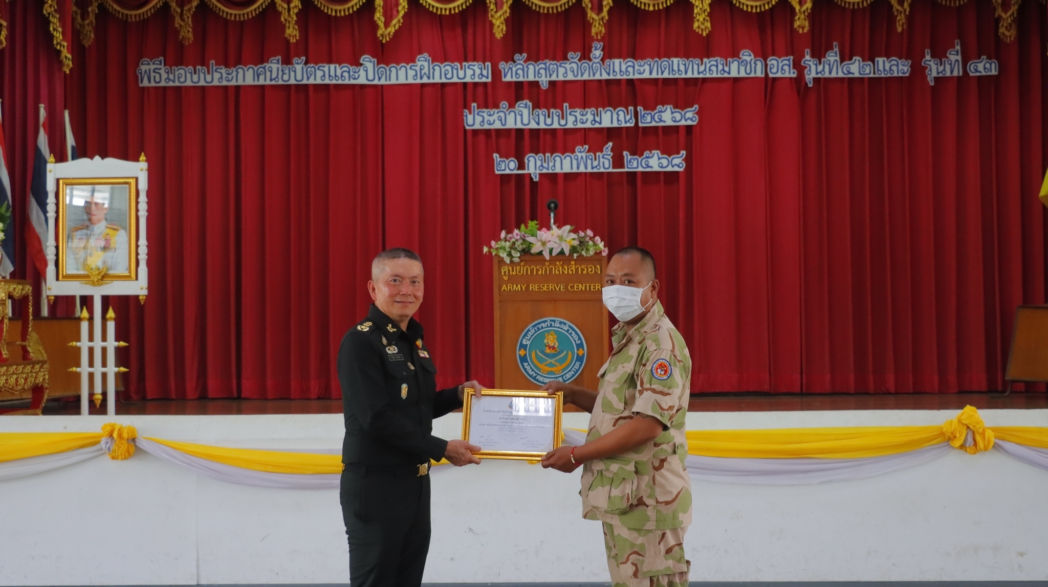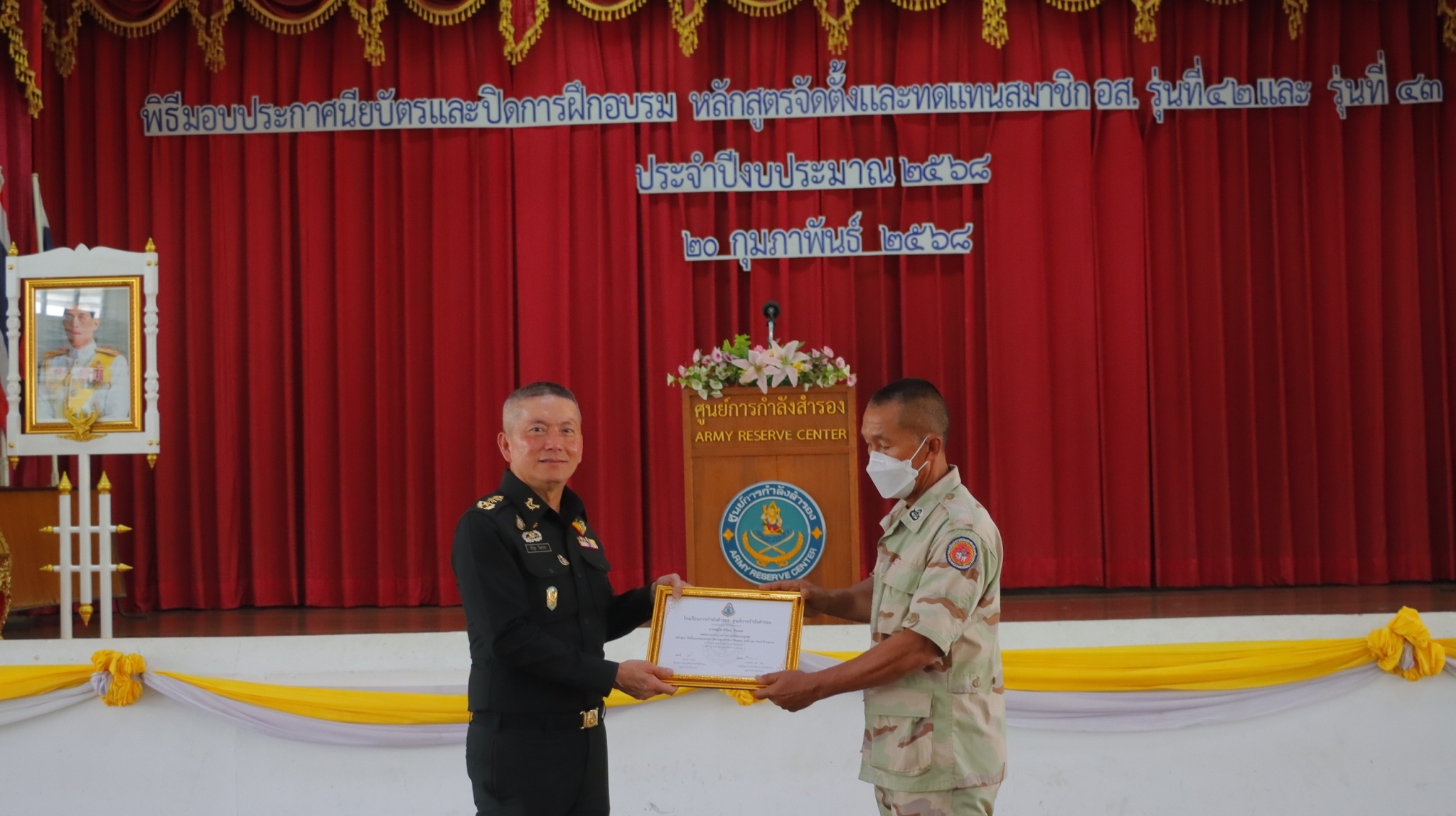 พล.ท.ทวีพูล ริมสาคร ผบ.นรด. เป็นประธานพิธีมอบใบประกาศนียบัตรและปิดการฝึกอบรม หลักสูตรจัดตั้งและทดแทนสมาชิก อส. รุ่นที่ 42 และ รุ่นที่ 43
