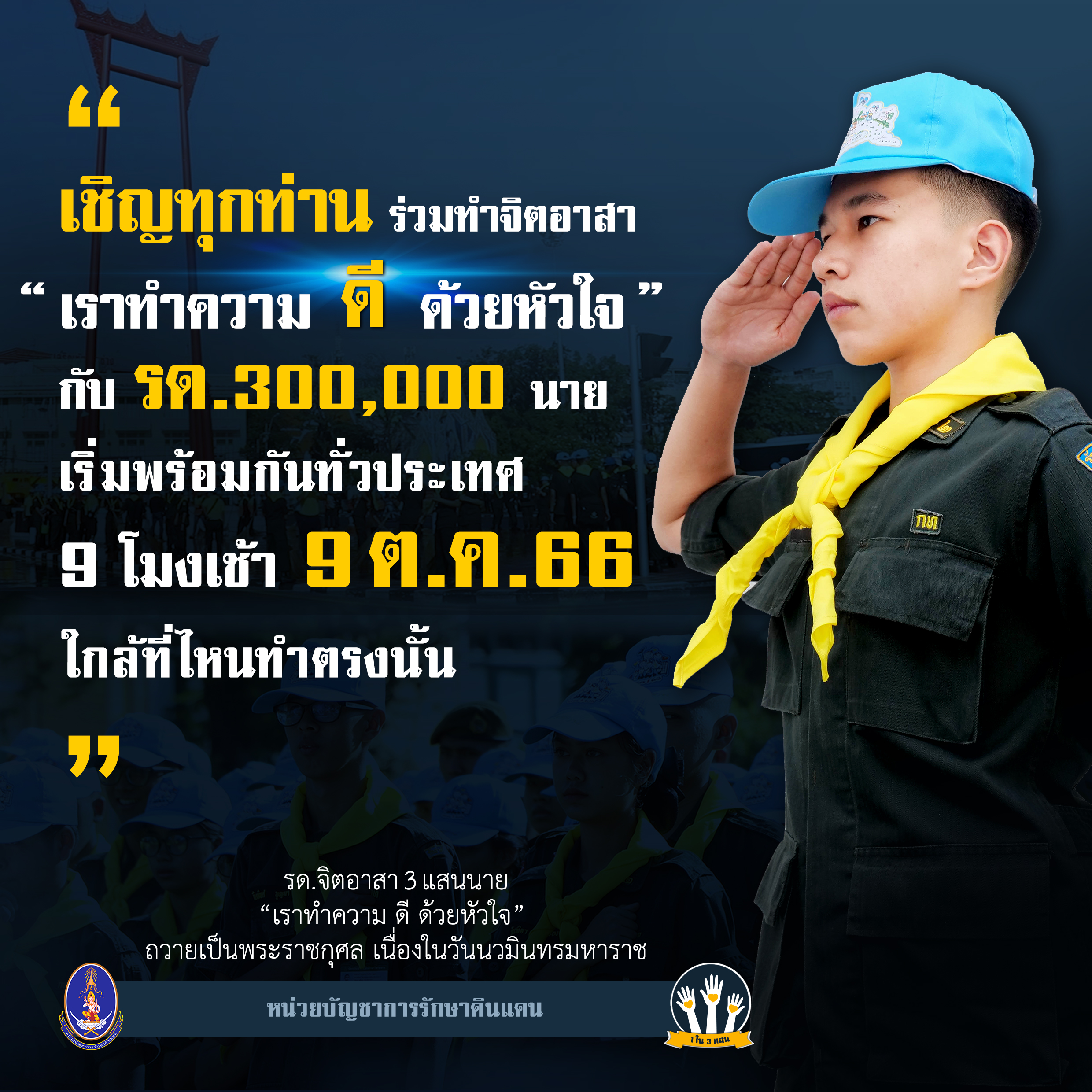 รด. จิตอาสา สามแสนนาย “เราทำความดี ด้วยหัวใจ” ถวายเป็นพระราชกุศล เนื่องในวันนวมินทรมหาราช