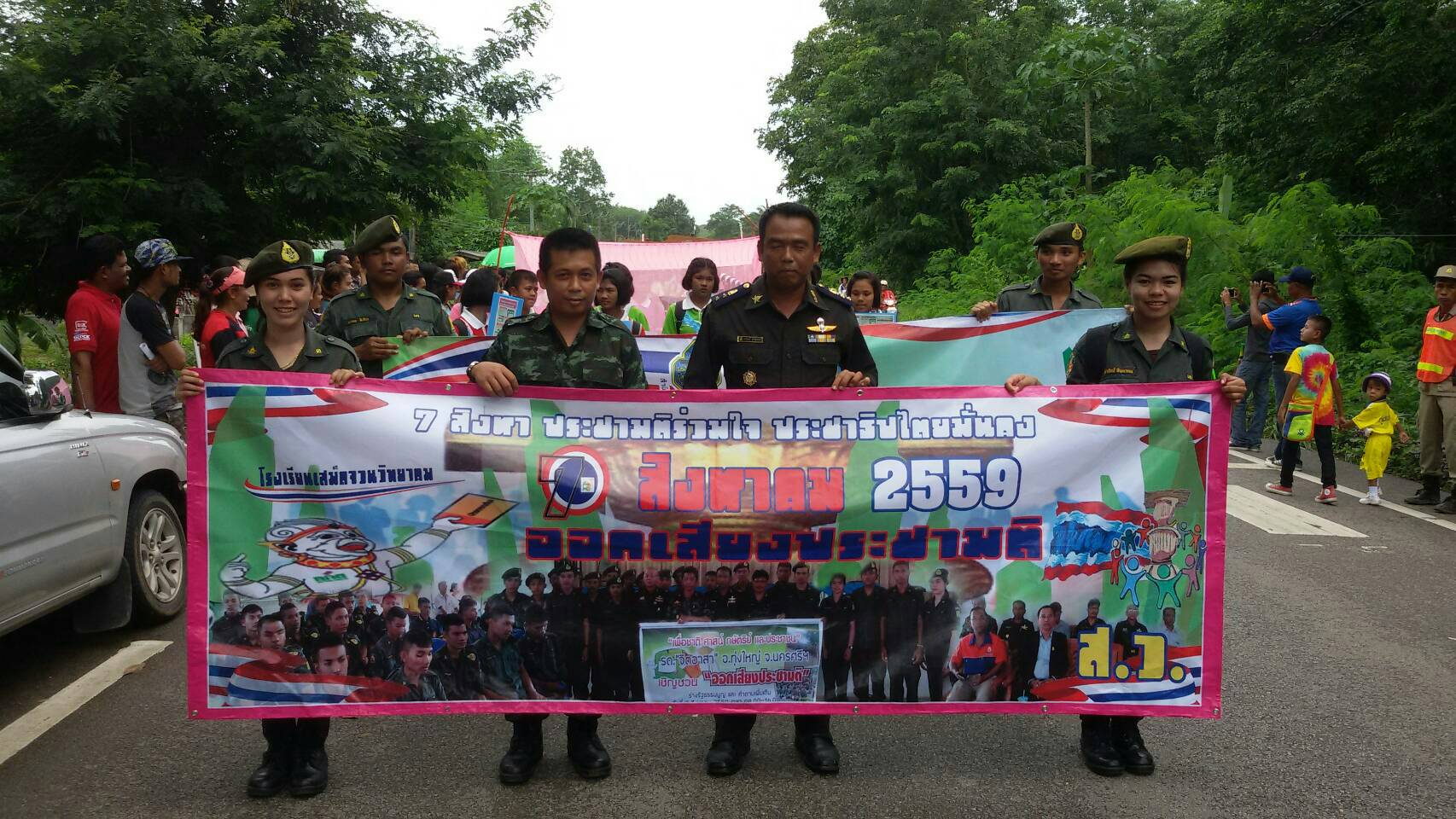 13 ก.ค. 59 เวลา 13.00 น. ผู้กำกับนักศึกษาวิชาทหาร, รด.จิตอาสา โรงเรียนเสม็ดจวนวิทยาคม, ข้าราชการสัสดีอำเภอทุ่งใหญ่ ร่วมขบวนพาเหรด การแข่งขันกีฬานักเรียน ประชาชน อบต.กุแหระ ประจำปี 2559 ณ สนาม โรงเรียนวัดเสม็ดจวน ตำบลกุแหระ อำเภอทุ่งใหญ่ จังหวัดนครศรีธรรมราช พร้อมทั้งถือแผ่นป้ายประชาสัมพันธ์ และแจกจ่ายแผ่นพับ รณรงค์ให้ประชาชนออกไปใช้สิทธิ์ลงประชามติร่างรัฐธรรมนูญ ในวันที่ 7 สิงหาคม 2559