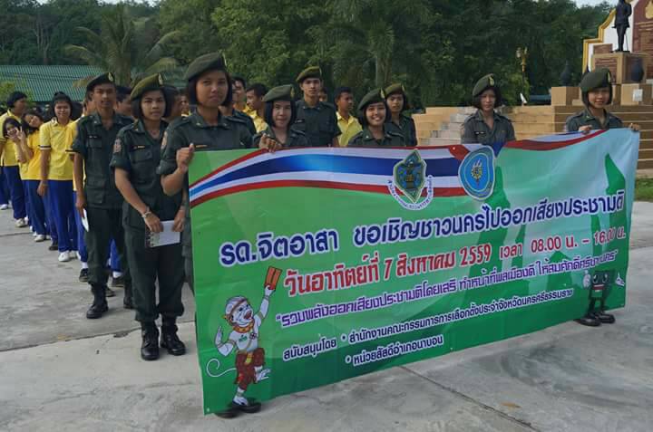 เมื่อ 28 กรกฎาคม 2559 รด.จิตอาสา คณะกรรมการสภานักเรียนโรงเรียนนาบอน หน่วยงานทั้งภาครัฐและเอกชนร่วมประชาสัมพันธ์ เพื่อเชิญชวนให้ประชาชนออกไปใช้สิทธิ์ลงประชามติร่างรัฐธรรมนูญ ในวันอาทิตย์ที่ 7 สิงหาคม 2559ทั้งได้แจกจุลสารประชาสัมพันธ์ ของ กกต.ด้วย